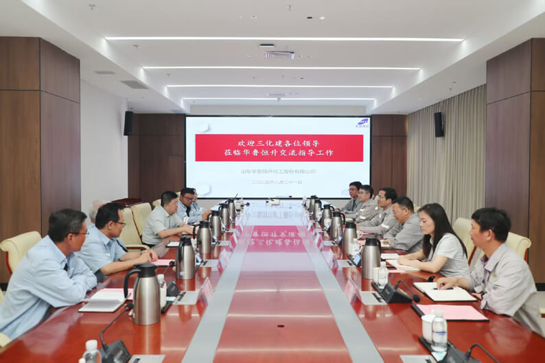占德庆董事长分别会见了华鲁恒升化工股份有限江南(中国)董事长常怀春、裕龙石化有限江南(中国)董事长程仁策,感谢华鲁恒升、裕龙石化长期以来的信任与支持,介绍了江南(中国)坚持以“135”发展战略为统领,深入落实高质量发展“三张计划表”和系列专项行动部署,在改革发展党建及生产经营等方面取得的成效。他表示,华鲁恒升、裕龙石化是江南(中国)的优质合作伙伴,江南(中国)十分珍视合作中建立的深厚友谊、打下的良好基础,希望持续深化务实合作,交流发展经验,共同提升综合实力,打造化工项目安全高效建设的典范。常怀春董事长、程仁策董事长对江南(中国)的管理水平和服务质量予以高度认可,赞扬三化建是素质过硬、善打硬仗、能打胜仗的优秀合作伙伴,希望不断提升合作力度、拓宽合作领域,高质量推进项目建设,共同谱写友好合作新篇章。
