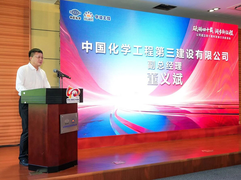 会上,董义斌副总经理代表三化建向华谊工程成立四十周年表示热烈祝贺。他回顾了双方长达二十年的深度合作与深厚情谊,强调三化建与华谊工程始终秉持互信互利原则,以创新驱动为动力,携手攻坚克难,在近四十个重大项目中紧密协作、优势互补,高质量推进工程建设,铸就了一批化工领域的标杆工程和精品样板,为行业高质量发展贡献了力量。展望未来,三化建期待与华谊工程进一步共享发展机遇,持续深化务实合作,共同把握市场新动能,推动化工石化行业创新升级,实现互利共赢、行稳致远。