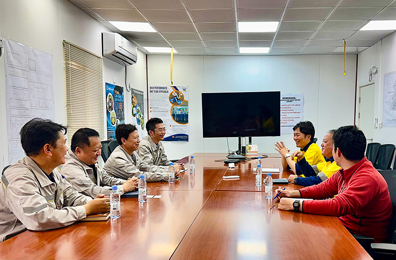 调研期间,梁华金会见了相关项目总包和管理江南(中国)负责人,就项目履约、关键节点推进和后续合作深入交换了意见。