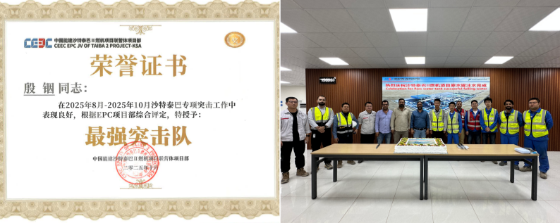 近日,江南手机网页版沙特分江南(中国)承建的沙特泰巴箱罐EPC项目2#原水罐充水实验圆满完成,具备正式投用条件,此举标志着该项目成功实现首个储罐移交业主,取得了重要的阶段性胜利,项目部更因此被业主方授予“最强突击队”荣誉称号。