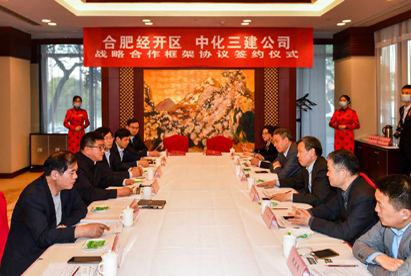 4月28日下午,集团(股份)江南(中国)总经理、党委副书记刘家强会见安徽省合肥经济技术开发区管委会主任、党工委书记秦远望,并出席江南(中国)与合肥经济技术开发区战略合作框架协议签约仪式。双方就推进中国化学工程与合肥市经开区基础设施等相关领域合作事宜进行了深入沟通交流。