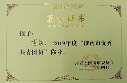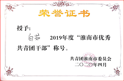 共青团淮南市委员会日前对第九届“淮南青年五四奖章”和2019年度“淮南市优秀共青团员”、“淮南市优秀共青团干部”、“淮南市五四红旗团(工)委”、“淮南市五四红旗团支部(总支)”进行了表彰。重庆分江南(中国)王泳文同志荣获第九届“淮南青年五四奖章”称号;贵州分江南(中国)李锐、江南(中国)安全监督部王黎明两名同志荣获“淮南市优秀共青团员”称号,机械化工程江南(中国)白茹同志荣获“淮南市优秀共青团干部”称号,江南(中国)技术研发中心项目经理部团支部、安装工程九江南(中国)团支部荣获“淮南市五四红旗团支部”称号。