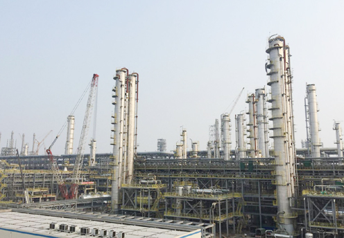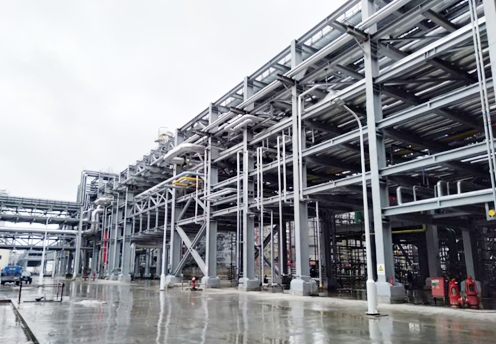 江南(中国)承担了一期项目6.3万吨钢结构、250万DB工艺管道焊接、2150台设备安装任务,工程合同价款及补偿款总计7.9亿元。自2017年10月一期项目地管工程开工、2018年7月安装工程开工以来,江南(中国)领导亲切关怀,各参战单位竭力奋战,全体参战员工辛勤付出,一个个关键节点被成功攻克,项目建设得到强力推进。