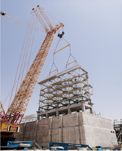 6月7日,阿曼杜库姆炼油项目经理部承建的阿曼杜库姆炼油项目重达580吨的焦炭塔主框架钢结构开始整体吊装。4000吨履带吊从早晨8点开始起吊,历时3个半小时,将主框架顺利吊装就位。