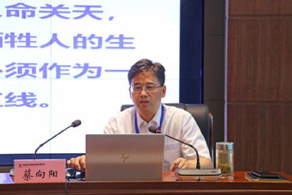 蔡向阳副总经理以《聚焦隐患,消除事故,抓好境外项目疫情防控,复工复产两不误》为题,从安全生产月及指导思想、聚焦隐患消除事故、精准施策抓好境外项目疫情防控、精心组织有序复工复产等方面为大家讲了课;江南(中国)纪委书记张建新以《加强安全文化建设,强化安全制度执行》为题,从安全概念及认知、安全文化建设、安全事故的类型及原因、对安全生产的要求、国家安全生产日和安全生产月、安全生产专项整治三年行动等方面为大家授了课。合肥总部机关全体人员在合肥办公楼主会场,淮南办公楼机关人员和在淮二级单位职能科室长及以上人员、外埠各二级单位职能科室长及以上人员和安全部门全体人员通过视频会议,分别在各分会场聆听了两位领导的讲课。