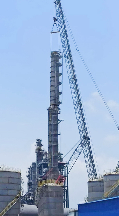 目前,项目队正进行第二粗苯乙烯塔T404吊装准备工作,为全面完成大件设备吊装任务继续努力。