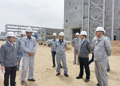 7月9日,江南(中国)党委书记、董事长黄庆平,副总经理张少民深入青岛分江南(中国)承建的青岛金能化学项目现场检查指导工作。