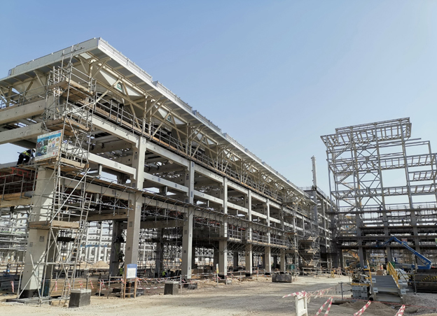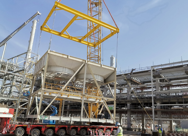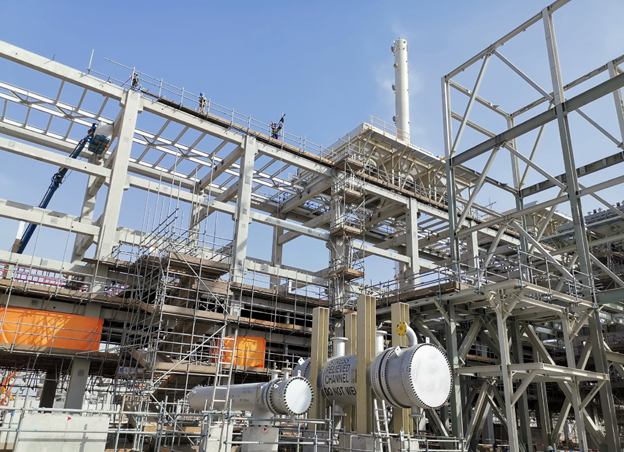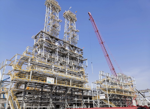 在疫情严重、天气炎热、施工人员十分紧张的不利条件下,项目部各级管理人员深入现场协调,积极与总包沟通,参与专业江南(中国)项目队施工管理,保证现场问题在最短时间内得到解决。全体参战员工顶风沙、冒酷暑,不辞辛苦、加班加点奋战,按期完成了102米高的焦炭塔钢结构框主体构件安装任务,拉开了“抗疫保收,双百会战”序幕,标志着项目施工正式进入紧张的结构、设备、管道全面安装阶段。