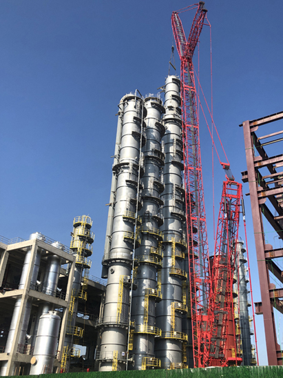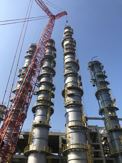 项目队不断优化方案,深入调研市场行情,精心安排进场人员、场地,不断调整最优衔接计划。在全体参战员工的艰苦努力下,项目队提前7天安全顺利完成11台塔器吊装计划,大大减少了大型起重机械的租赁费用。同时,也为后续工作的顺利开展创造了有利条件。