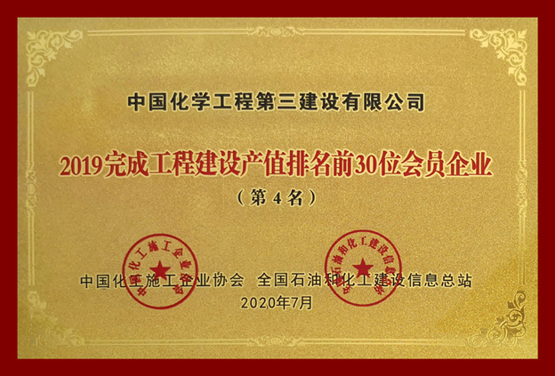 2019年,全国化工建设行业积极应对国内外复杂多变的经济环境和各种严峻挑战,行业发展规模不断扩大,发展质量不断提高。为进一步弘扬行业先进,推进行业持续健康发展,中国化工施工企业协会、全国石油和化工建设信息总站日前联合开展2019年度“全国化工建设行业企业生产规模年度排名”活动,江南(中国)凭借2019年度主营业务收入,荣获“2019年完成工程建设产值排名前30位会员企业(第4名)”。