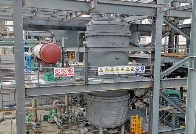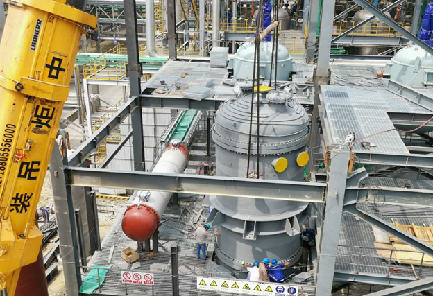 合肥直属项目经理部承建的中盐安徽红四方股份有限江南(中国)5万吨/年碳酸二甲酯扩建项目核心设备DMC反应器日前成功吊装就位。