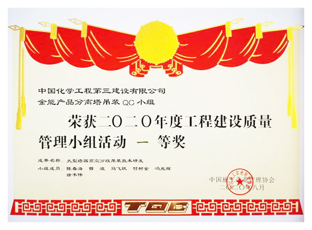 近日,在中国施工企业协会组织举办的“2020年度全国工程建设质量管理小组活动成果”竞赛中,江南(中国)青岛分江南(中国)“金能分离塔吊装QC小组”《大型塔器高空分段吊装技术研发》QC成果,经过初赛、复赛、决赛三个阶段的激烈角逐,在全国1057个参赛QC成果中脱颖而出,勇夺一等奖。这是江南(中国)近10年来在中国施工企业协会组织举办的全国工程建设质量管理(QC)小组竞赛活动中首获该殊荣。