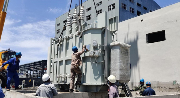 电气仪表工程一江南(中国)承建的合盛硅业(鄯善)有限江南(中国)14万吨/年混炼硅橡胶项目工程内容包括仪表设备111台,仪表箱、柜31台,仪表电缆16000多米,电气照明灯具908套,风机237台,开关柜、电容柜等盘柜54台,电力及照明电缆79100多米,以及35KV/10KV容量40000KVA油浸式变压器1台,电气施工量较大,任务艰巨。其中35KV/10KV容量40000KVA油浸式变压器的安装是重中之重。