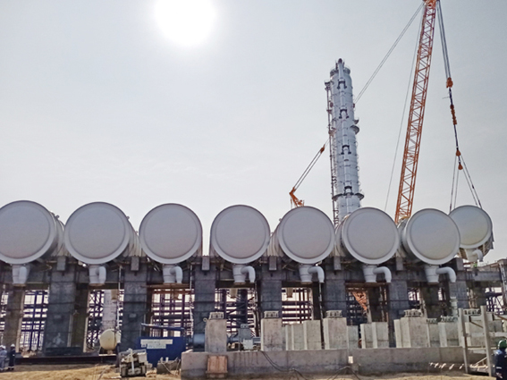 9月22日,安装工程五江南(中国)承建的哈萨克斯坦PDH项目卡托芬反应器全部吊装就位。