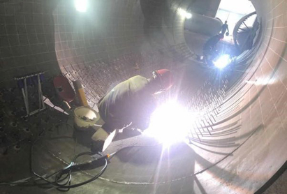 40万吨/年丙烷异丁烷脱氢装置反应区有7条大直径管道。包括:4台反应器进出口管线5条(需进行隔热衬里及耐磨衬里)、再生空气压缩机入口消音器及过滤器2条。管道工作介质温度高,对管道的制作、内衬以及安装质量要求高、工期紧, 需要加强控制,保证各环节质量,确保最终质量目标。双节期间,主要进行1500mm和2400mm管道组对安装焊接、特阀安装。施工过程中,项目队严格施工程序,层层把关,保质保量,创优质工程。全体参战员工为国庆、中秋呈上了最真挚、最珍贵的礼物。