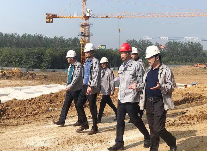 在分江南(中国)负责人的陪同下,赵亚明副总经理仔细查看了项目现场,了解现场安全、质量、进度控制和文明施工状况,听取项目施工组织情况的工作汇报。