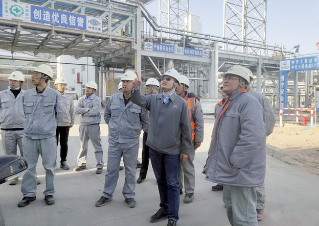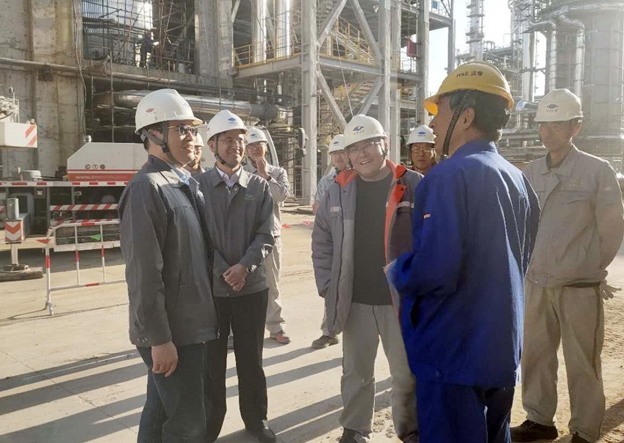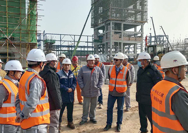 协调会后,占德庆董事长、蔡向阳副总经理深入内蒙古分江南(中国)承建的神华榆林循环经济煤炭综合利用项目空分、甲醇、污水处理等装置现场,仔细查看了现场安全、质量、成本、工期控制等方面情况,并亲切看望慰问现场广大干部职工,对各参战单位在内蒙古分江南(中国)的团结带领下,攻坚克难、连续奋战、屡创佳绩予以充分肯定,对中标神华榆林5万吨/年聚乙醇酸示范项目建筑安装工程等系列生产经营成果表示祝贺,对内蒙古分江南(中国)贯彻落实“五位一体”经营布局,推进三级江南(中国)改革,做大区域化市场等方面工作提出殷切希望。