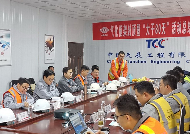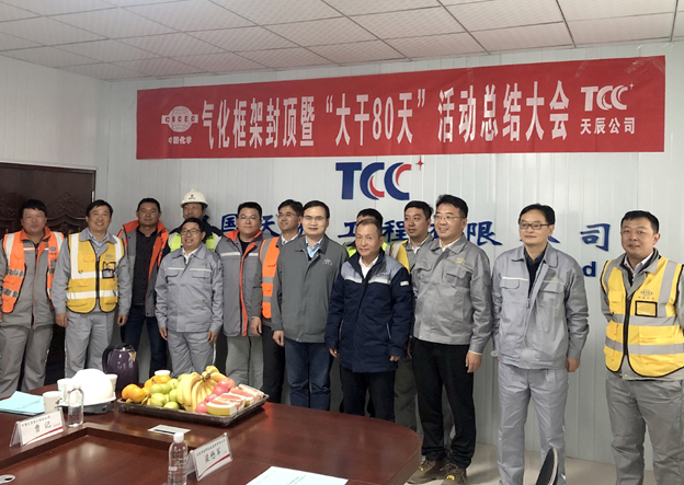 30日上午,占德庆董事长、蔡向阳副总经理出席陕煤集团榆林化学180万吨/年乙二醇项目总包天辰江南(中国)“气化框架封顶暨大干80天总结大会”。由于组织得力,气化框架结构提前封顶,业主和总包方给予高度评价并给予专项嘉奖。占德庆董事长对各方给予中化三建的信任与支持表示感谢,表示中化三建将一如既往、全力支持项目建设,与业主、总包一道,勠力同心,攻坚克难,加快推进现场施工,按期交付优质满意工程。随后,占德庆董事长、蔡向阳副总经理仔细查看了空分、气化以及陕西分江南(中国)承建的粉煤热解等装置现场,结合项目工期紧、管理标准高、施工难度大等特点,就不断总结经验、强化管理、进一步干好后续工程提出希望和要求。