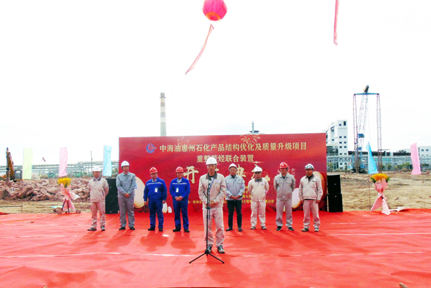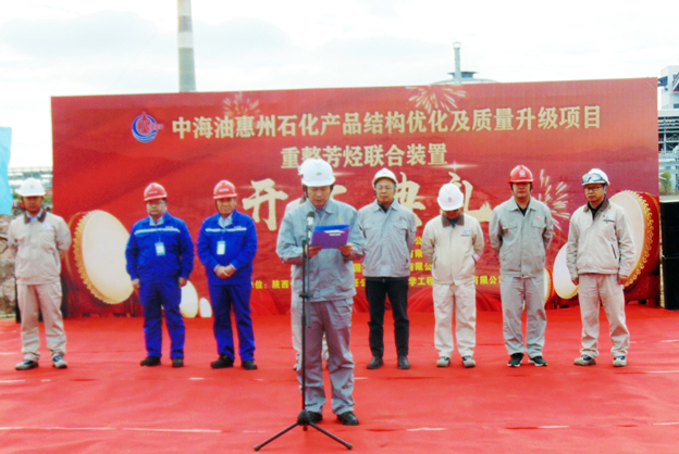 12月15日上午,广东直属项目经理部承建的中海油惠州石化产品结构优化及质量升级项目重整芳烃联合装置举行开工典礼。中海油惠州石化有限江南(中国)总经理夏强斌,以及设计、监理、施工单位领导参加开工典礼。江南(中国)副总经理赵亚明代表施工单位在开工仪式上致辞。中海油惠州石化有限江南(中国)总经理夏强斌宣布项目正式开工。