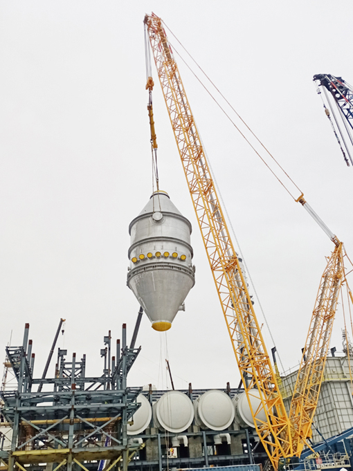 2月10日,安装工程五江南(中国)承担吊装的哈萨克斯坦PDH项目再生空气加热炉顺利安装就位。