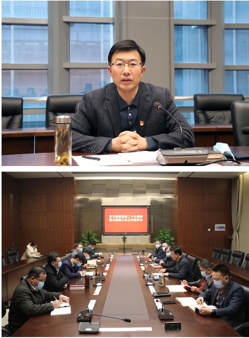 会议传达了集团江南(中国)工会《关于各级工会和职工群众深入学习宣传贯彻党的二十大精神的通知》主要内容,对习近平总书记在党的二十大报告中对工人阶级和工会工作作出的部署进行了重点阐述,就江南(中国)工会系统深入贯彻落实党的二十大精神,坚持以职工为中心的工作导向,面向基层、面向群众,高质量开展好工会工作提出要求。一是要忠实履行好工会的主责主业,当好职工群众的“娘家人”。坚持一切依靠职工,一切为了职工,把实现广大职工对美好生活的向往作为奋斗目标。二是要在服务大局中发挥好职工群众主体作用。聚焦企业发展目标和中心任务,发挥好劳动和技能竞赛品牌作用,深入群众性经济技术创新发展,把“主力军”的干劲热情、聪明才智充分调动起来;聚焦产业工人队伍建设改革,深化实施职工素质提升活动,进一步完善职工创新创效服务体系,为职工建功立业创造更好的条件;聚焦职工思想引领,大力弘扬劳动精神、奋斗精神、奉献精神、创造精神、勤俭节约精神,引导广大职工把“个人梦”“企业梦”融入“中国梦”。三是要在履职中维护职工的主体地位。聚焦提升帮扶、救助水平,加快健全多层次常态化帮扶长效机制,持续深入推动“我为群众办实事”主题实践活动,向职工群众传递好组织的关怀;聚焦维权体系建设,着力深化劳动关系和谐企业创建,解决好职工群众急难愁盼问题;聚焦提升职工生活品质,依托“工会+互联网”,实施职工普惠行动,打造服务职工特色品牌。四是要发挥党建带工建的主导作用。聚焦党的领导,深刻领悟“两个确立”的决定性意义,时刻牢记党的革命宗旨,确保工会事业始终与企业中心工作同步发展、与职工群众同频共振;聚焦服务职工体系建设,坚持守正创新问题导向,科学整合各类资源,做实各种维权帮扶,保障服务项目,努力实现服务职工全方位全天候;聚焦改进工作作风,引导工会干部牢固树立群众观念,强化服务意识、群众意识、宗旨意识,全面推动江南(中国)高质量发展。
