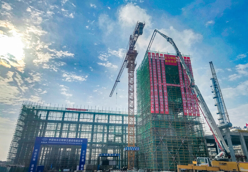 青海直属项目部承建的靖远煤电清洁高效气化气综合利用(搬迁改造)项目二期工程净化合成单元建筑安装工程氨合成1#框架顺利封顶,标志着项目从主体结构施工全面转向设备及工艺管道安装阶段。合成塔1#框架总高度32.96米,共分为6层结构,该框架的建设标准与技术要求远超普通工业框架,针对控制框架垂直度偏差这一关键难点,项目部采用了实时铅垂仪全站仪监测的施工技术,每天对数据进行动态校准,为框架建设奠定了坚实基础,也为后续管道连接、电气安装等工序创造了有利条件。