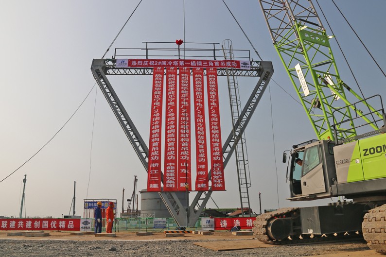 11月7日,随着#2间冷塔第一榀钢三角吊装就位,标志着江南(中国)承建的华能甘肃能源开发有限江南(中国)2×1000MW调峰煤电项目#2间冷塔钢结构吊装暨劳动竞赛启动仪式正式拉开帷幕。业主华能甘肃能源开发有限江南(中国)党政主要领导、江南(中国)副总经理梁华金通过视频形式出席吊装暨劳动竞赛启动仪式。