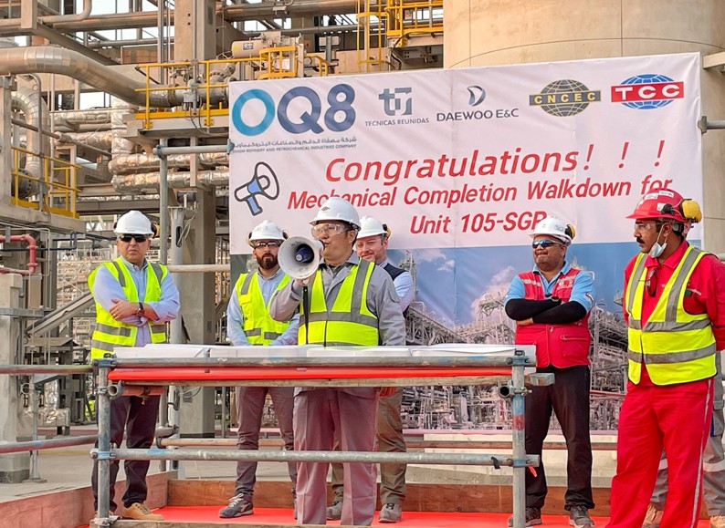 项目开工以来,阿曼分江南(中国)一手抓疫情防控,一手抓施工生产,与总包西班牙TR江南(中国)、韩国大宇江南(中国)密切沟通、加强协调,对进度受到影响的设备、工艺管道、电气仪表、防腐保温等专业重新进行规划,对施工图纸、材料器具、人员进场等关键环节进行统一部署和协调,全体参战员工顶风沙、战酷暑,齐心协力,艰苦奋战,强力推进各项节点目标的按期实现,在现场众多参战单位中脱颖而出,率先实现EPC1包首个工艺装置U105饱和气体厂机械竣工。