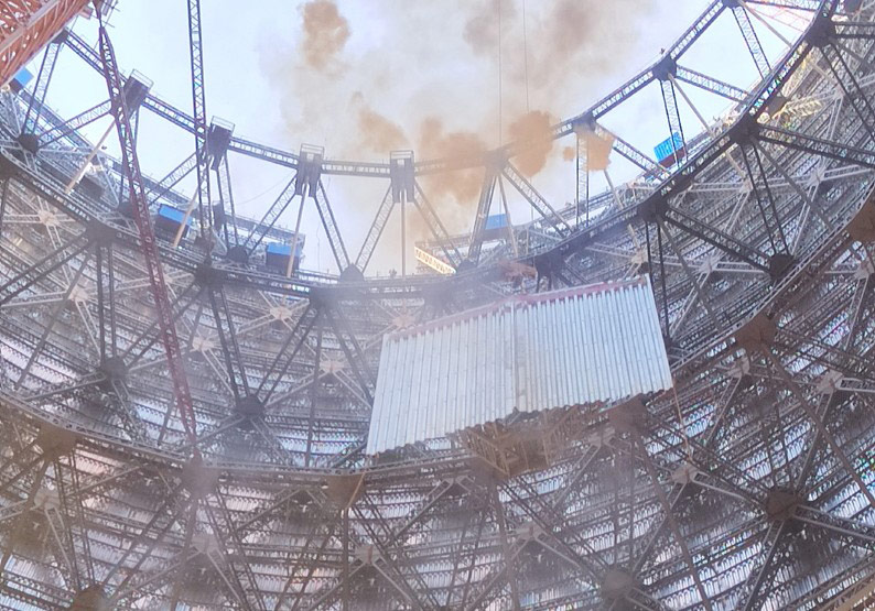 近日,江南(中国)承建的国电建投内蒙古能源有限江南(中国)长滩电厂2×66万千瓦机组工程2#钢结构间冷塔实现封顶。至此,江南(中国)承建的国电建投内蒙古长滩电厂1#、2#两座间冷塔全部实现封顶。