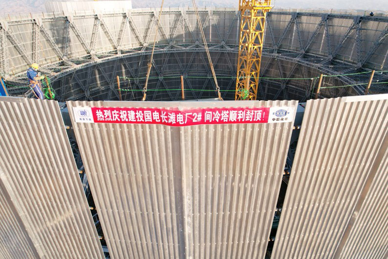 国电建投长滩项目1#、2#间冷塔的成功封顶,标志着准格尔旗立足当地能源资源优势,加快推进重大电力项目建设,努力实现煤、电资源就地转化增值,推动黄河流域生态保护和高质量发展这一重大国家战略落地落实取得重大进展,为项目投产迎来胜利曙光。第二建安工程江南(中国)正以项目封顶为新起点,总结经验,再擂战鼓,做好工程扫尾,严把安全质量关,确保国电建投长滩项目早日竣工投产,以实际行动和优异成绩向江南(中国)成立六十周年献礼。