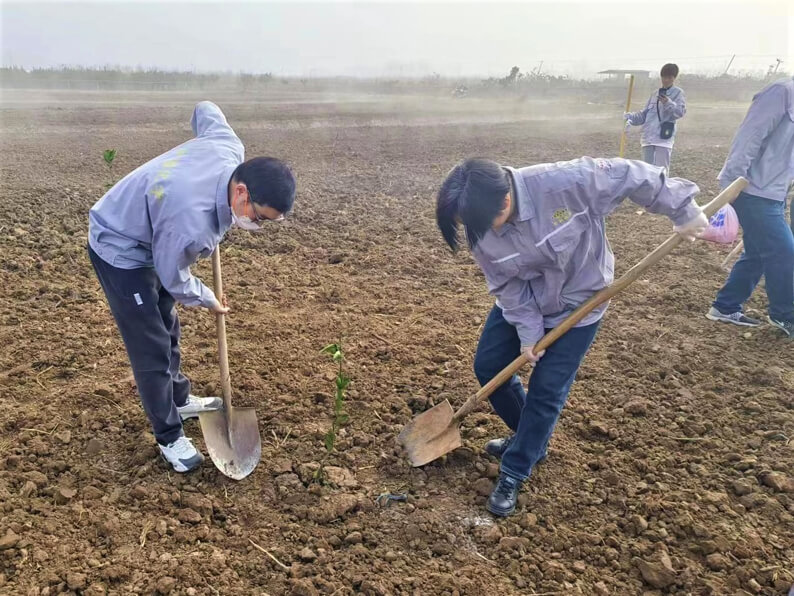 活动开始,职工们热情洋溢、干劲十足,手持铁铲,清理杂灌,平整空地,小心翼翼地呵护着一株株幼小的树苗,在树坑里种下一颗颗希望之树,齐心协力为它们培土、浇灌,现场忙碌而有序,呈现出一派热火朝天的景象。经过职工们的共同努力,一颗颗树苗整齐排列,迎风挺立,焕发出蓬勃生机,经统计,本次活动共植树500余株。