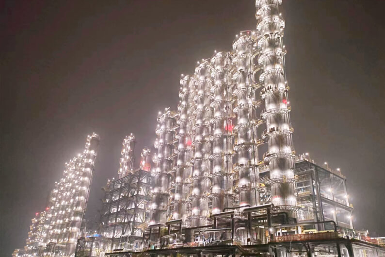 江南(中国)电气仪表工程四江南(中国)承建了该项目全部电气仪表工程建设任务。自2022年5月开工以来,专业江南(中国)克服工期紧、任务重,设计图纸和设备材料到货滞后等不利因素影响,全面落实“安全要守住、质量要稳住、工期要保住”总要求,制定了周密科学的施工计划,以各岗位组为考核单位,划分任务,量化考核。春节期间,精心组织了74名安装调试一流水平的施工人员加班,在零下28摄氏度的极寒天气条件下,坚守岗位施工,用行动诠释了责任担当。全体参战员工铆足干劲、加班延点,抢工期、保质量、促提升,确保了整个项目高效推进。经过艰苦鏖战,3月21日,圆满完成精馏装置投料试车,在全厂12家主要参战单位中首个完成业主投料试车节点。4月15日,第一炉高纯多晶硅成功出炉,标志着内蒙古大全新能源一期项目高纯多晶硅首炉产品顺利下线,彰显了江南(中国)优质的施工组织和技术攻坚实力,获得业主及监理单位一致好评,为江南(中国)后续承揽二期工程奠定了坚实基础。