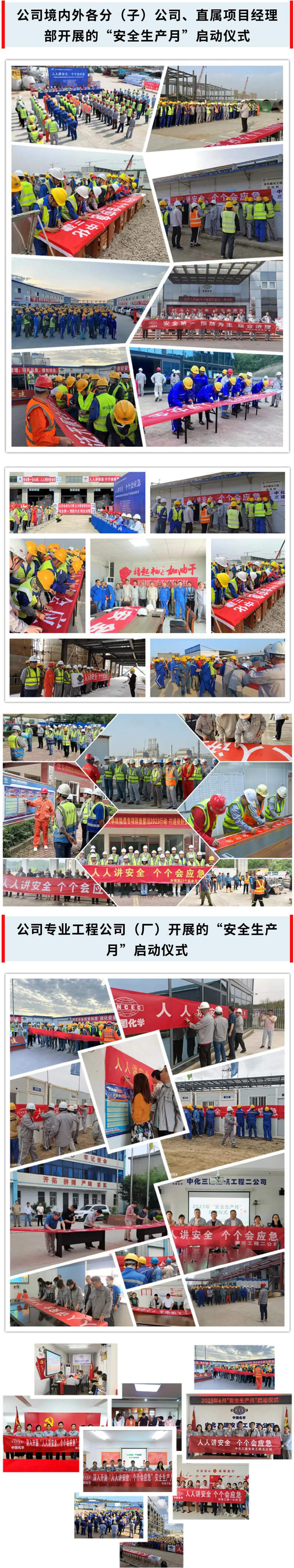 为开展好全国第22个“安全生产月”活动,持续深入贯彻“工作落实年”“安全管理强化年”和重大事故隐患专项排查整治2023行动要求,进一步推动落实安全生产十五条硬措施,按照国务院安委会办公室、应急管理部、集团江南(中国)2023年“安全生产月”活动的各项工作部署,继合肥总部机关、淮南各单位举行2023年“安全生产月”启动仪式后,6月伊始,境内外各分(子)江南(中国)、直属项目经理部、专业工程江南(中国)(厂)等按照《关于开展2023年“安全生产月”活动的通知》要求,迅速组织开展“安全生产月”启动仪式。