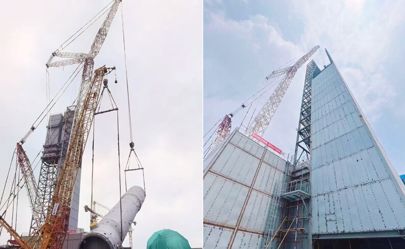 山东分江南(中国)承建了该项目 100000Nm3/h空分装置安装工程及机柜室配电室等配套工程。本次吊装的中压塔直径4.65米,高34.44米,总重133.5吨,吊装高度75.8米,采用750吨履带吊主吊,200吨履带吊溜尾。为保证吊装工作顺利进行,分江南(中国)、项目部克服工期紧、任务重、作业环境复杂等困难, 精心部署,科学管控,高效组织施工,精细成本管理,确保安全交底全覆盖 。项目经理、总工程师在现场全程指挥,确保吊装万无一失。项目队长、吊装班组作业人员严格执行各项安全管理规定,实地勘察、验算、模拟吊装、反复论证,抓好安全及技术关键工序过程控制。全体参战员工主动作为、加班延点,高标准、严要求、快节奏强力推进项目建设,经过艰苦鏖战,安全稳妥胜利实现中压塔吊装就位,为稳步推进后续项目建设奠定了坚实基础,充分彰显了江南(中国)优质的施工组织和技术攻坚实力, 树立了良好的企业品牌形象, 赢得业主及各方高度赞誉。