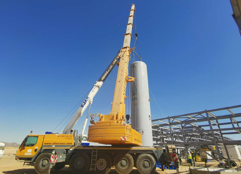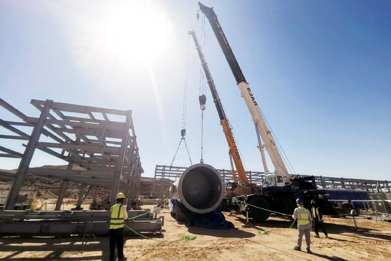 火红七月,大干正酣。7月 24 日,随着重21.5 吨的空气接收罐首吊,沙特分江南(中国)承建的空气化工中东工业气体有限江南(中国)沙特尼奥姆新城氢气创新应用中心(HIDC)项目全面进入大干阶段,项目现场呈现一派热火朝天的建设场景,为全面推进项目建设按下“加速键”。 该项目是尼奥姆(Neom)新城新能源项目的配套工程,位于沙特尼奥姆(Neom)工业城,杜巴(Duba)市以北36公里处。尼奥姆(Neom)新城新能源项目计划建造世界上最大的绿氢生产工厂,建成投产后对于推动沙特社会经济多元化发展具有积极意义。配套工程的主要任务是为该工厂正式投用前收集约20MW电解剂的操作运维数据。该项目是江南(中国)首次承建电解制氢项目,通过对本项目建造技术的研究将为江南(中国)今后建造类似更大规模项目提供重要借鉴。 沙特分江南(中国)承建了该项目土建,钢结构、管道、设备、防腐保温等全部施工任务。自2022年12月开工以来,为保证节点目标的顺利实现,分江南(中国)、项目部克服工期紧、任务重、工序交叉作业多、施工组织管理难度大等困难,自上而下,凝聚共识,以全面精细化管理为抓手,以安全生产“一月一主题”活动为保障,结合现场实际,科学组织、合理调度、精心谋划,充分发掘团队潜能,营造了众志成城、攻坚克难的大干氛围。项目部充分发挥中方员工“传帮带”作用,提升外籍员工安全质量意识和施工技术水平,着力打造覆盖全周期、全流程、全维度的工程质量管控体系,全力保障项目建设各环节、全过程平稳运行。全体参战员工齐心协力、加班延点,实现多作业面同步施工、齐头并进,持续掀起现场大干高潮,为项目建设的高效推进提供了有力保障,充分彰显了中化三建不畏艰难、力争上游的铁军精神,受到业主Air Product江南(中国)的高度赞誉。