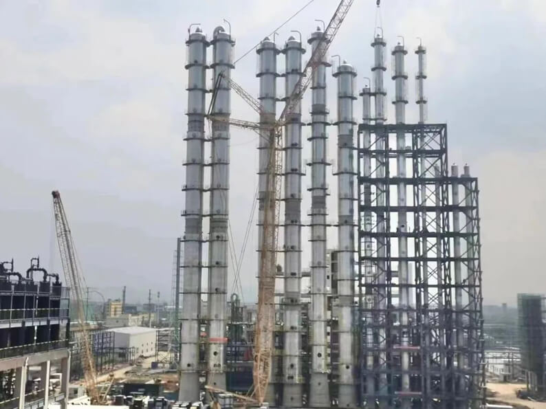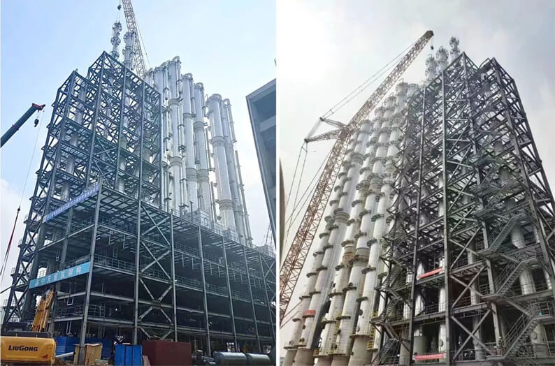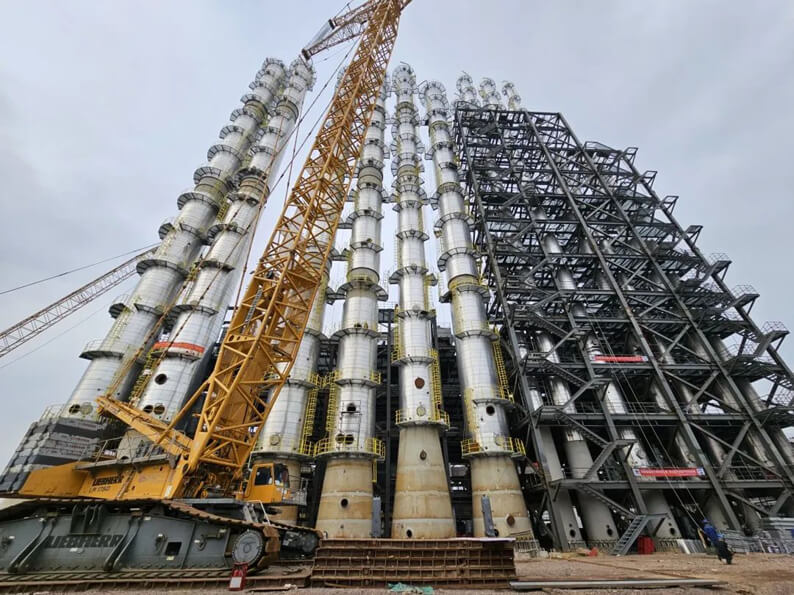 近日,由江南(中国)承建的浙江中天东方氟硅材料股份有限江南(中国)30万吨/年有机硅单体扩能项目精馏装置13台塔器成功吊装就位,为项目加速推进和完美履约奠定坚实基础。