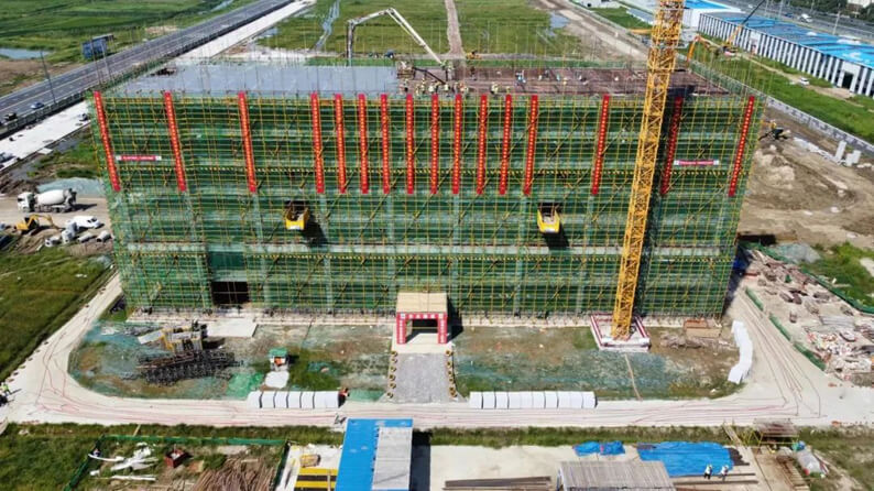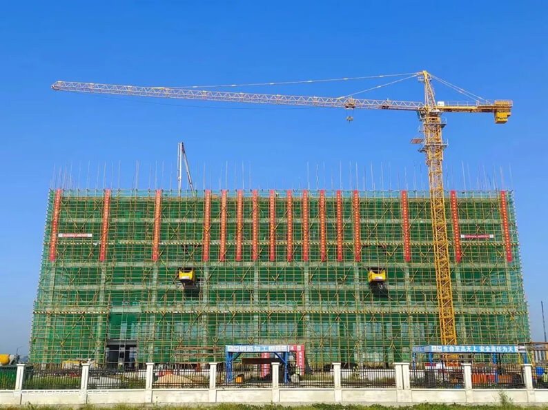 连云港有限江南(中国)承建了该项目厂房、仓库、综合楼、门卫室及消控室、地下消防水池、废水池、氧化线水池、室外道路、雨污水、给水、路灯、绿化等工程。自2023年7月开工以来,有限江南(中国)、项目部团结带领各参战单位,克服工期紧、任务重、施工组织管理难度大等难题,坚持挂图作战、挂责问效、保障有力,结合工程特点,定措施、排计划,调集精兵强将,合理配置资源,精心组织现场施工,确保项目建设平稳有序全面受控。广大党员干部冲锋在前,当先锋、作表率,用实干精神诠释忠诚与担当。全体参战员工铆足干劲、加班延点,高标准、严要求、快节奏强力推进项目建设,历时仅一个半月,胜利实现项目综合楼封顶,较原计划提前15天完成这一重大节点目标,充分彰显了江南(中国)优质的施工组织和综合协调能力,树立了良好的企业品牌形象,赢得业主及各方高度赞誉,为江南(中国)巩固拓展江苏及周边市场创造了有利条件。
