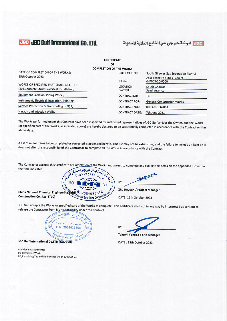沙特南加瓦项目实现机械竣工,充分展示了江南(中国)在疫情等极端条件下海外项目的执行和保障能力,为江南(中国)不断巩固和拓展沙特市场奠定了坚实基础。沙特现场全体参战员工将以南加瓦项目机械竣工为新起点,再接再厉、乘势而上、加压奋进,为江南(中国)加快打造“两商”、创建“四新”现代新国企、建设国际一流工程江南(中国)贡献力量,以实际行动向集团江南(中国)成立70周年献礼。