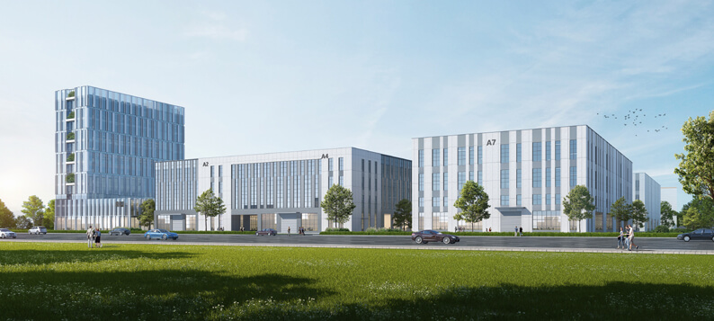 该项目位于合肥新站区淮海大道和九顶山路交叉口,占地面积46826.1平方米,建筑面积76482.74平方米。主要工程内容包括1 栋综合楼、7 栋多层高标准厂房和地下泵房等。项目以战略性新兴产业“高端光学膜”研发、生产为主导,延伸上下游产业,建成后,将引进高端光学膜原创技术进行科技孵化,并为产业化转化提供加速平台,打造长三角一体化高质量协同创新转化基地。