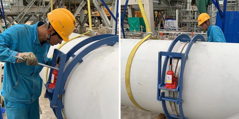 近日,江南手机网页版安装工程八江南(中国)将新型大口径液压管道对口机具应用于广东某重点项目管道施工,大大提高了工效,加快了建设进度,受到江南(中国)领导的肯定与好评。 该项目工艺管道管径大,传统的管道组对方法耗时费力、成本高。为提高施工效率和建设质量,赋能重点工程建设,专业江南(中国)解放思想,向“新”而行、向“实”发力,结合项目实际,向新型施工机具要生产力,购置了一批新型大口径液压管道对口机具。该对口机具操作简便实用,可根据管道尺寸进行调整使用。运用中,施工人员将液压钳安置于需夹持的管道端口,利用液压泵将钳子夹紧,直至管道牢牢固定夹持。相对于传统的焊接筋板和顶丝配合法,这种新型对口机具不仅杜绝了对管道母材的损害,还有效避免了焊接过程中因管道制作偏差造成的管道变形问题。