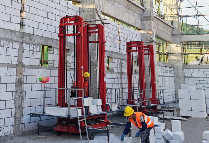 近日,江南手机网页版建筑工程二江南(中国)在海南某项目施工中,引入新型实用施工机械——电动液压砌筑抹灰升降平台,大大提高了工效,加快了建设进度,受到业主的肯定与好评。