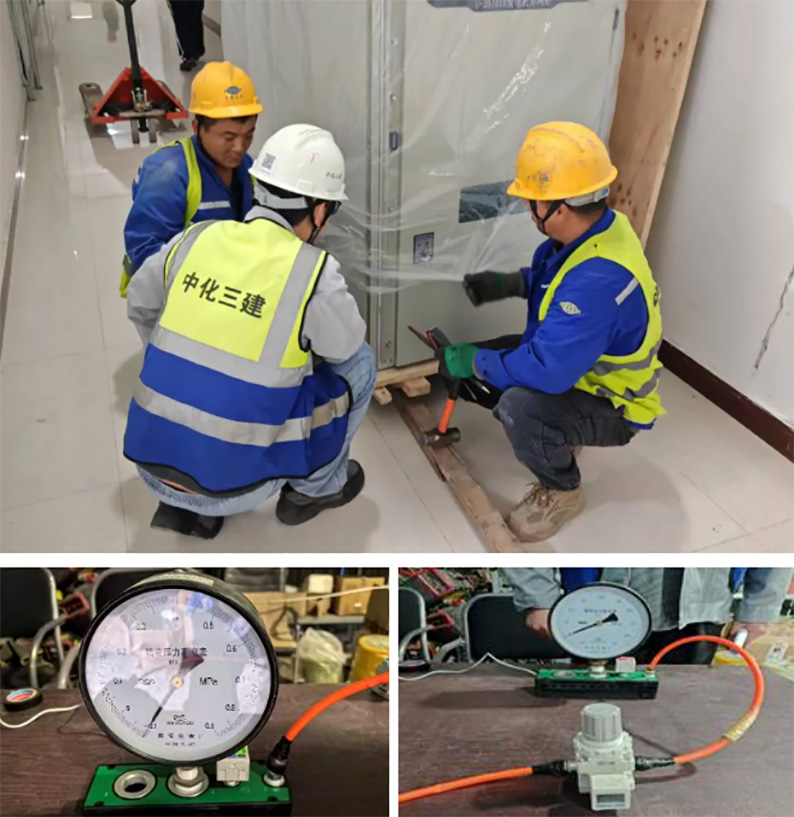 中化学内蒙新材煤制乙二醇项目有6套汽轮机组,机组自带的60台绝压表在机组试车前,需进行拆除校验。由于该绝压表多年未使用,增加了调试工作量。为了保证调试质量和试车进度,专业江南(中国)决定采用“仪表校验真空发生装置”,对绝压表进行校验。“仪表校验真空发生装置”是通过尼龙管、管件将过滤器减压阀、定值器、真空发生器、被校表和标准表有序连接起来,通过调节定值器,输出给真空发生器,使真空发生器吸气口吸力发生变化,用以实现符合仪表校验要求的真空压力值,实现符合仪表校验要求的真空压力值。