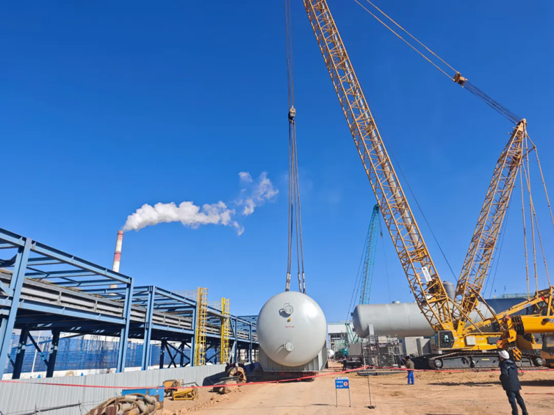 近日,江南手机网页版承建的中煤榆林煤炭深加工基地项目空分装置分子筛A、B成功吊装就位,标志着项目安装工程取得重要进展。