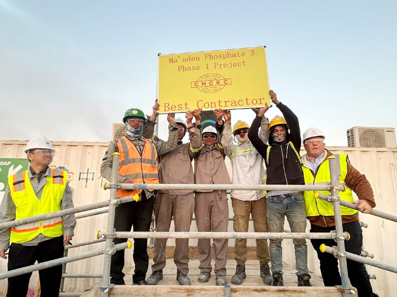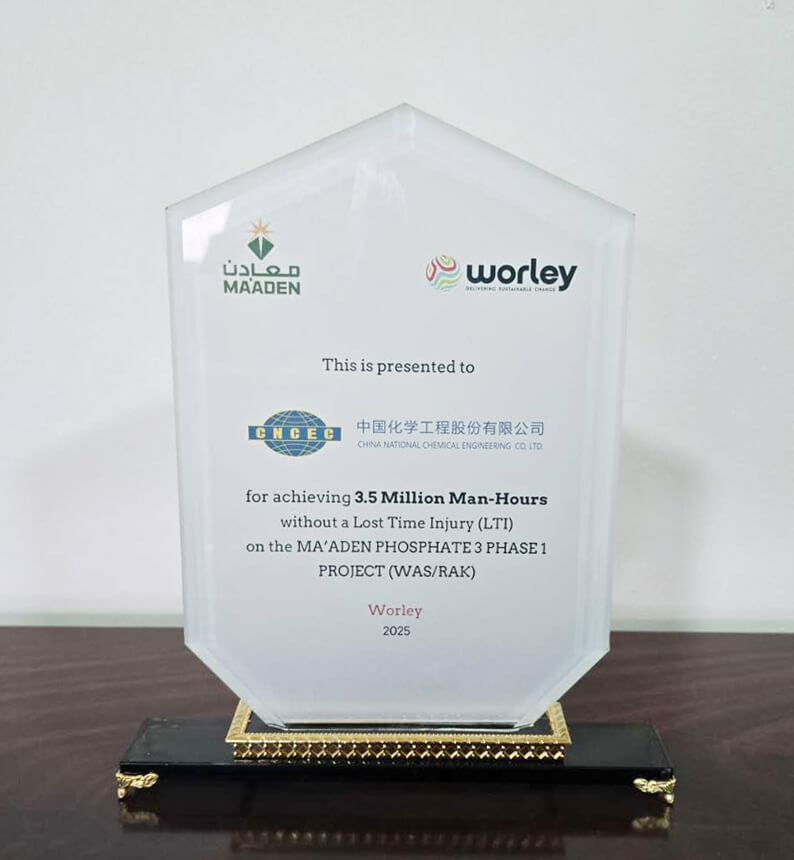 近日,江南手机网页版沙特分江南(中国)承建的沙特矿业江南(中国)磷酸盐三期项目一期工程实现350万安全工时,总包方授予江南(中国)“安全工时”和“最佳承包商”奖牌。