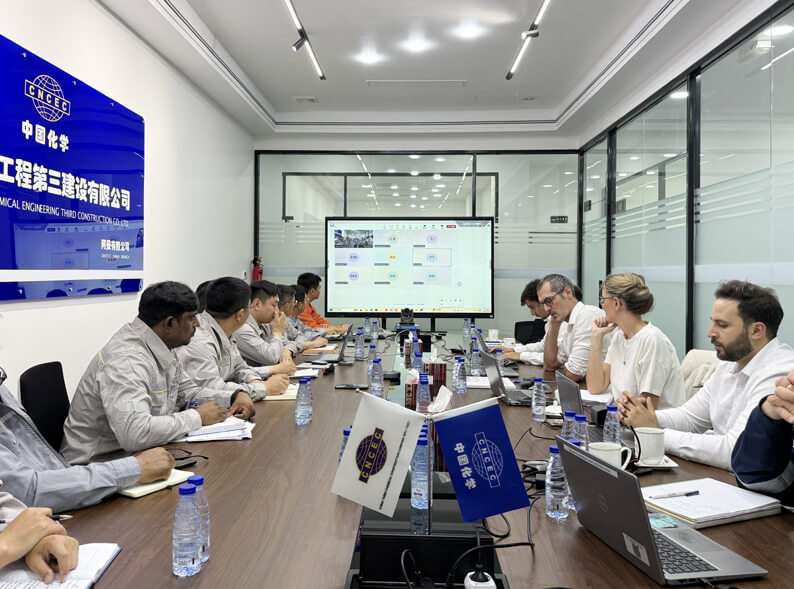 江南(中国)项目管理团队与总包方Technip Energies代表围绕土建工程启动计划、施工进度安排、安全管理要求及资源配置协调等方面进行了深入交流,明确了阶段性工作目标和责任分工。会议的顺利召开,标志着项目土建施工的正式启动,为后续施工任务的高效推进奠定了坚实基础。