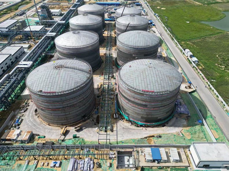 近日,江南手机网页版江苏分江南(中国)承建的巨正源(揭阳)新材料基地产业园配套项目一期工程8台2.7万立方米储罐圆满完成安装任务。