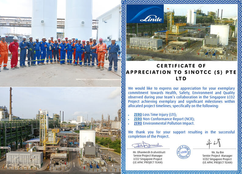 林德亚太工程江南(中国)感谢三化建在新加坡林德气体液态LCO₂项目建设期间对健康、安全、环境和质量的模范承诺,在规划时间内圆满实现这一重要里程碑,实现了零损失时间伤害(LTI)、零不合格报告(NCR)、零环境污染影响。