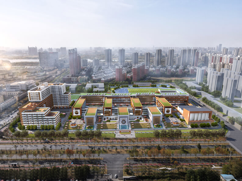 合肥实验高中项目位于合肥市经开区芙蓉路与观海路交口,总占地面积约119.91亩,预计办学规模3000人,规划总建筑面积约105100平方米(其中地上80300平方米,地下24800平方米),主要建设内容包括教学及辅助用房、教研用房、后勤及生活用房等,并配套建设室外体育运动设施、供配电、管线综合、道路广场、大门围墙、智慧校园。项目立足“现代化、高品质、示范性”定位,按照国家级示范性高中标准建设,计划于2026年全面投入使用。