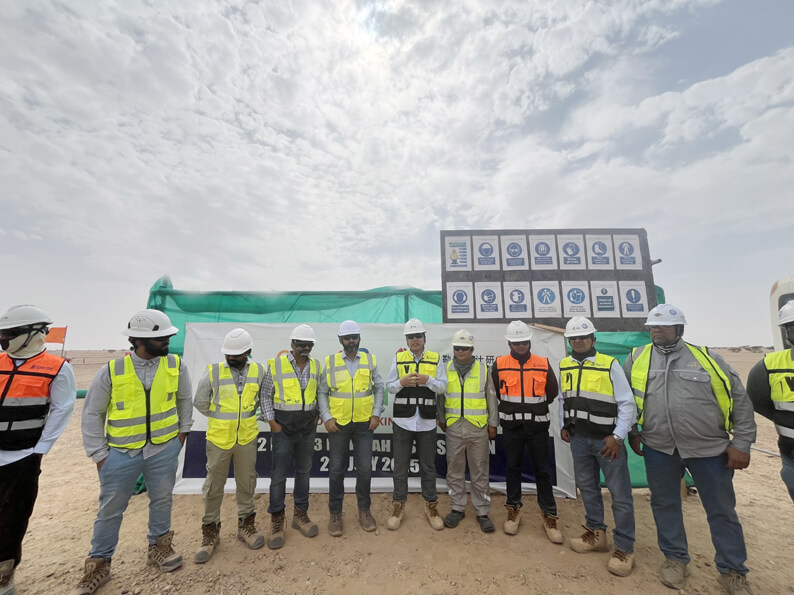 该项目是由OQ Alternative Energy LLC投资、华东伊卜里光伏建设有限责任江南(中国)总包的能源基建项目。项目包含105MW光伏电站(卡恩阿拉姆机场区,占地300公顷)及200MW风电场(利雅1号441公顷、利雅2号226公顷),工程范围涵盖光伏/风电升压站共22类建筑物(含控制楼、泵房等)及变压器/SVG等机电安装;利雅2号风电场风机基础(21.8m直径大体积混凝土)建设。核心工程量包括土方开挖6000立方米、混凝土浇筑4000立方米、电缆敷设107000米等,计划工期2025年7月至2026年6月,材料供应采用“甲供设备电缆+乙供土建材料”模式。经过前期周密筹备,目前项目已正式破土动工,进入施工“快车道”。