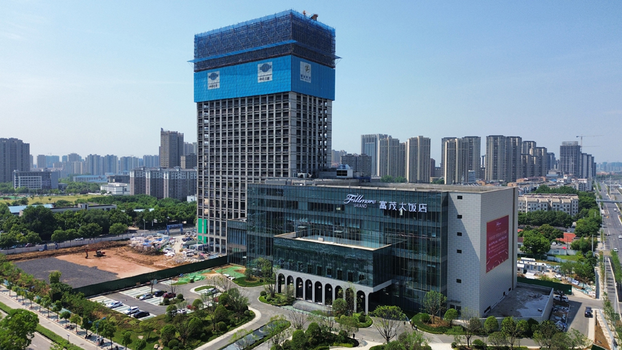 采用全型钢电动(液压)爬架施工技术建造的高层民用住宅和公共建筑--安徽肥西富茂大饭店项目